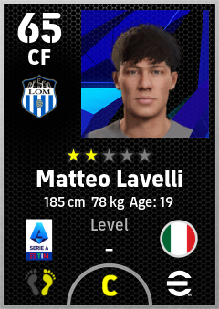 . Matteo Lavelli is a Center Forward footballer from Italy who plays for Internazionale Milano in eFootball 2026.