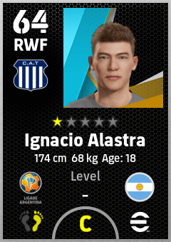 . Ignacio Alastra is a Right Wing Forward footballer from Argentina who plays for Córdoba Ab in eFootball 2026.