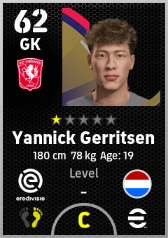 . Yannick Gerritsen is a Goalkeeper footballer from Netherlands who plays for Fc Twente in eFootball 2026.