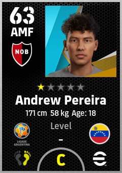 . Andrew Pereira is a Attacking Midfielder footballer from Venezuela who plays for Rosario Rn in eFootball 2026.