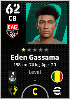 . Eden Gassama is a Center Back footballer from Mali who plays for En Avant Guingamp in eFootball 2026.