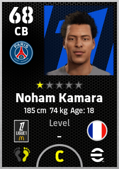 . Noham Kamara is a Center Back footballer from France who plays for Paris Saint-Germain in eFootball 2026.