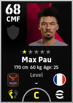 . Max Pau is a Center Midfielder footballer from France who plays for La Louvière Gw in eFootball 2026.