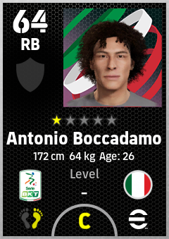 . Antonio Boccadamo is a Right Back footballer from Italy who plays for Entella Ba in eFootball 2026.