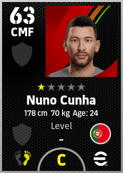 . Nuno Cunha is a Center Midfielder footballer from Portugal who plays for Free in eFootball 2026.
