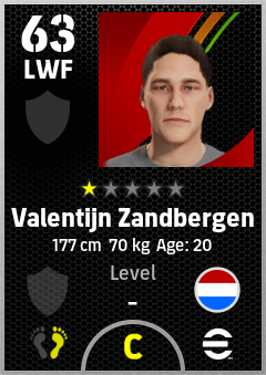 . Valentijn Zandbergen is a Left Wing Forward footballer from Netherlands who plays for Free in eFootball 2026.