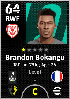 . Brandon Bokangu is a Right Wing Forward footballer from France who plays for As Nancy-Lorraine in eFootball 2026.