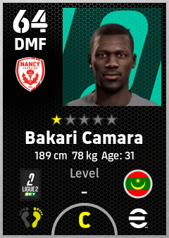 . Bakari Camara is a Defensive Midfielder footballer from Mauritania who plays for As Nancy-Lorraine in eFootball 2026.