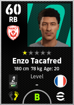 . Enzo Tacafred is a Right Back footballer from France who plays for As Nancy-Lorraine in eFootball 2026.