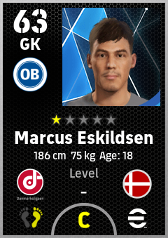 . Marcus Eskildsen is a Goalkeeper footballer from Denmark who plays for Odense Hb in eFootball 2026.