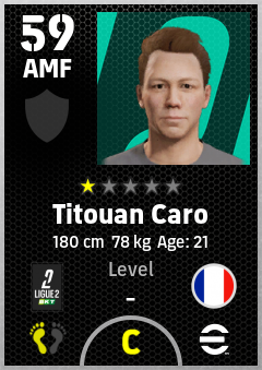 . Titouan Caro is a Attacking Midfielder footballer from France who plays for Le Mans Fc in eFootball 2026.