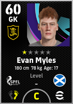 . Evan Myles is a Goalkeeper footballer from Scotland who plays for Livingston Fc in eFootball 2026.
