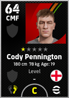 . Cody Pennington is a Center Midfielder footballer from England who plays for Free in eFootball 2026.