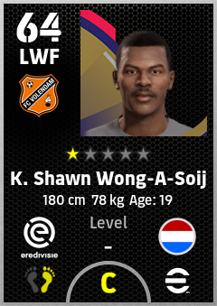 . K. Shawn Wong-A-Soij is a Left Wing Forward footballer from Netherlands who plays for Fc Volendam in eFootball 2026.
