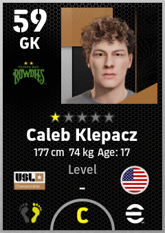 . Caleb Klepacz is a Goalkeeper footballer from United States who plays for Tampa Bay Rowdies in eFootball 2026.