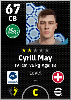 . Cyrill May is a Center Back footballer from Switzerland who plays for Sankt Gallen Gw in eFootball 2026.