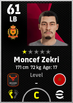 . Moncef Zekri is a Left Back footballer from Morocco who plays for Mechelen Gr in eFootball 2026.