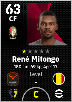 . René Mitongo is a Center Forward footballer from Belgium who plays for Liège Rw in eFootball 2026.