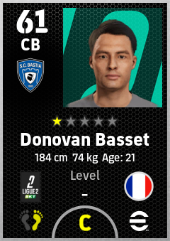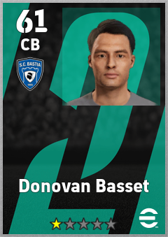 . Donovan Basset is a Center Back footballer from France who plays for Sc Bastia in eFootball 2026.