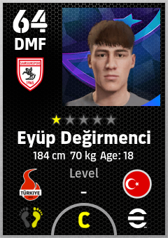 . Eyüp Değirmenci is a Defensive Midfielder footballer from Türkiye who plays for Samsunspor in eFootball 2026.