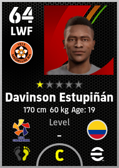 . Davinson Estupiñán is a Left Wing Forward footballer from Colombia who plays for Medellín Ra in eFootball 2026.