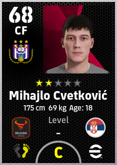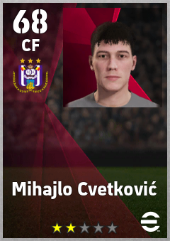 . Mihajlo Cvetković is a Center Forward footballer from Serbia who plays for Anderlecht Pw in eFootball 2026.