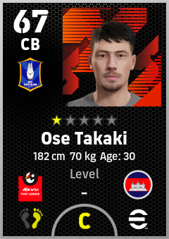 . Ose Takaki is a Center Back footballer from Cambodia who plays for Bg Pathum United Fc in eFootball 2026.