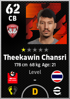 . Theekawin Chansri is a Center Back footballer from Thailand who plays for Muangthong United Fc in eFootball 2026.