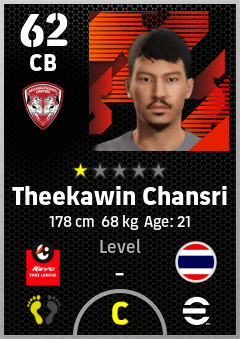. Theekawin Chansri is a Center Back footballer from Thailand who plays for Muangthong United Fc in eFootball 2026.