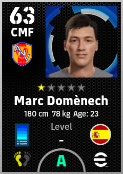 . Marc Domènech is a Center Midfielder footballer from Spain who plays for Andorra La Vella Aar in eFootball 2026.