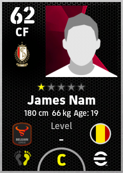 . James Nam is a Center Forward footballer from Belgium who plays for Liège Rw in eFootball 2026.