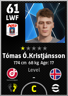 . Tómas Ó.kristjánsson is a Left Wing Forward footballer from Iceland who plays for Aarhus Hb in eFootball 2026.