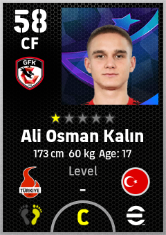 . Ali Osman Kalın is a Center Forward footballer from Türkiye who plays for Gaziantep Fk in eFootball 2026.