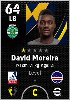 . David Moreira is a Left Back footballer from Cabo Verde who plays for Sporting Cp in eFootball 2026.