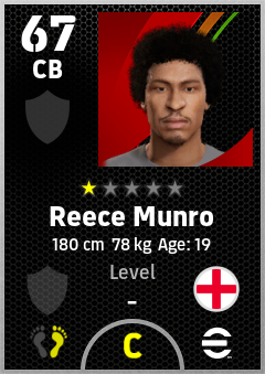 . Reece Munro is a Center Back footballer from England who plays for Free in eFootball 2026.