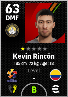 . Kevin Rincón is a Defensive Midfielder footballer from Colombia who plays for Villavicencio Bn in eFootball 2026.