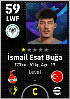 . İsmail Esat Buğa is a Left Wing Forward footballer from Türkiye who plays for Konyaspor in eFootball 2026.