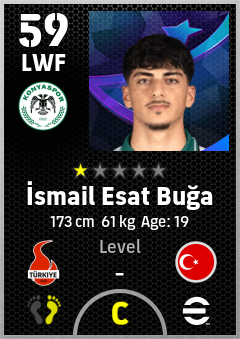 . İsmail Esat Buğa is a Left Wing Forward footballer from Türkiye who plays for Konyaspor in eFootball 2026.