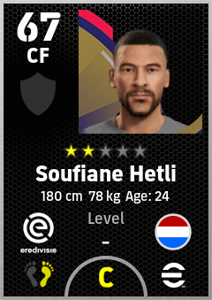 . Soufiane Hetli is a Center Forward footballer from Netherlands who plays for Telstar in eFootball 2026.