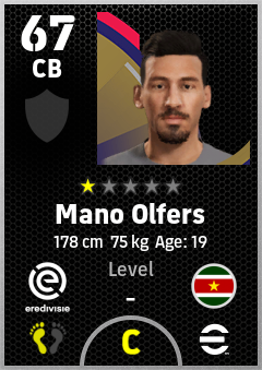 . Mano Olfers is a Center Back footballer from Suriname who plays for Telstar in eFootball 2026.