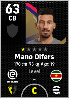 . Mano Olfers is a Center Back footballer from Suriname who plays for Telstar in eFootball 2026.