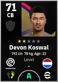 . Devon Koswal is a Center Back footballer from Netherlands who plays for Telstar in eFootball 2026.