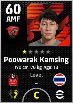 . Poowarak Kamsing is a Attacking Midfielder footballer from Thailand who plays for Uthai Thani Fc in eFootball 2026.