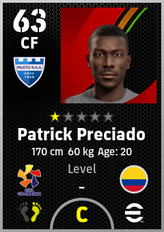 . Patrick Preciado is a Center Forward footballer from Colombia who plays for Pasto Raa in eFootball 2026.