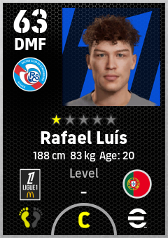 . Rafael Luís is a Defensive Midfielder footballer from Portugal who plays for Rc Strasbourg Alsace in eFootball 2026.