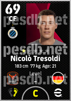 . Nicolò Tresoldi is a Center Forward footballer from Germany who plays for Brugge Bz in eFootball 2026.