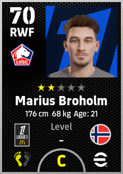. Marius Broholm is a Right Wing Forward footballer from Norway who plays for Losc Lille in eFootball 2026.