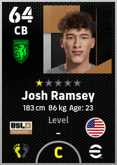 . Josh Ramsey is a Center Back footballer from United States who plays for Lexington Sc in eFootball 2026.