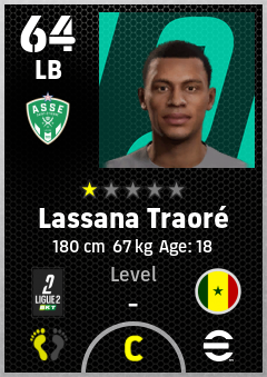 . Lassana Traoré is a Left Back footballer from Senegal who plays for As Saint-Étienne in eFootball 2026.
