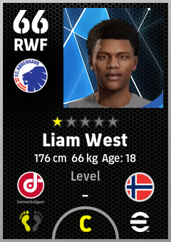. Liam West is a Right Wing Forward footballer from Norway who plays for København Hb in eFootball 2026.